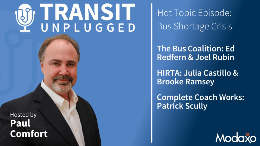 We’ve pulled together some experts on the bus manufacturing crisis for this episode. We start off with Ed Redfern and Joel Rubin from The Bus Coalition talking about the background of the crisis and what they are trying to do to alleviate it. Next we hear from Julia Castillo and Brooke Ramsey of HIRTA (Heart of Iowa Regional Transit Agency)about how this largely rural agency, impacted by bus shortages and cost increases, joined with 21 agencies across the U.S. to request a Buy America waiver so they can purchase buses abroad. Finally we get the industry perspective from Patrick Scully of Complete Coach Works with some innovative solutions for getting more out of the your existing bus fleet and meeting our zero emissions targets.